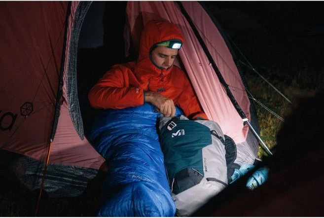 Weighing just over a kilo and providing warmth allowing you to spend the night comfortably despite the negative temperatures, the LIGHT DOWN -10 ° mountaineering sleeping bag is intended for bivouacs at altitude and for winter nights in shelters. unguarded. Its ultra-light outer shell resists tears thanks to its ripstop grid, while the K DRY ? FP700 certified duck down insulation swells quickly once the bag is taken out of its cover, to provide optimal thermal comfort. Everything has been designed to prevent the cold from entering this mountain sleeping bag: a two-point adjustable hood, an insulating collar on the shoulders and a flap under the zipper.