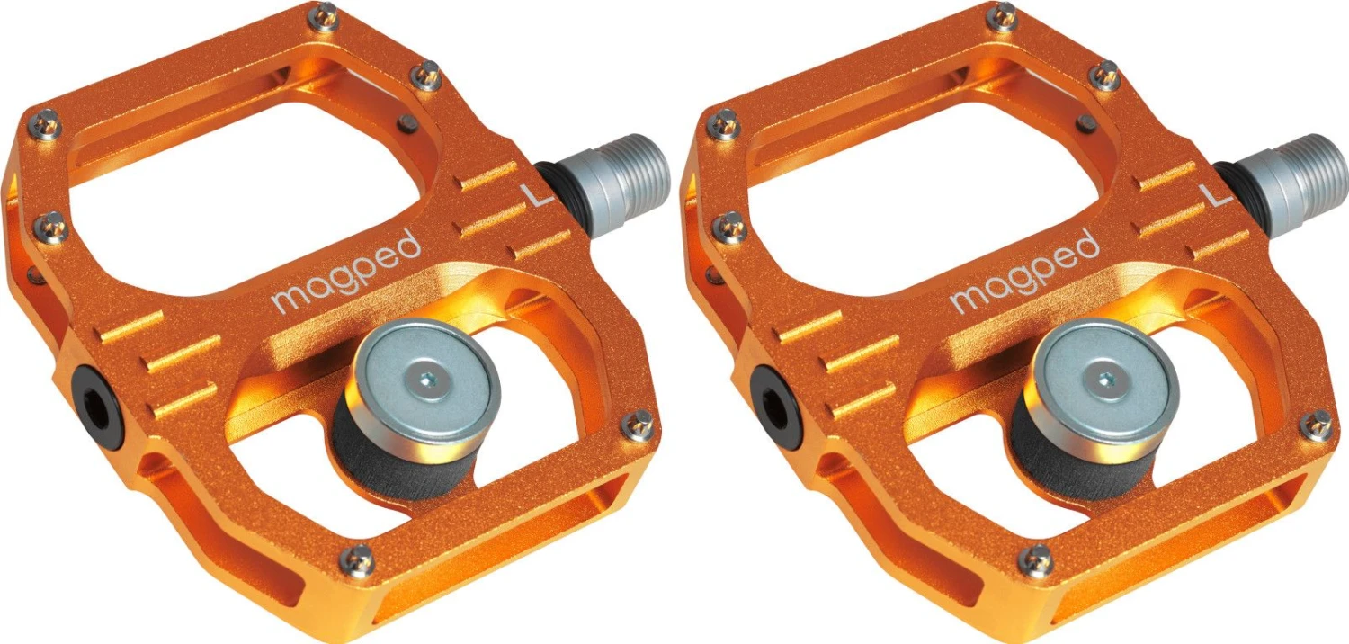 - The Magped pedal is a modern, high-quality flat pedal made from lightweight CNC milled aluminium with a CrMo or Titanium spindle. All Magped pedals are extremely competitive compared to other high-end pedals, despite the added magnet system.