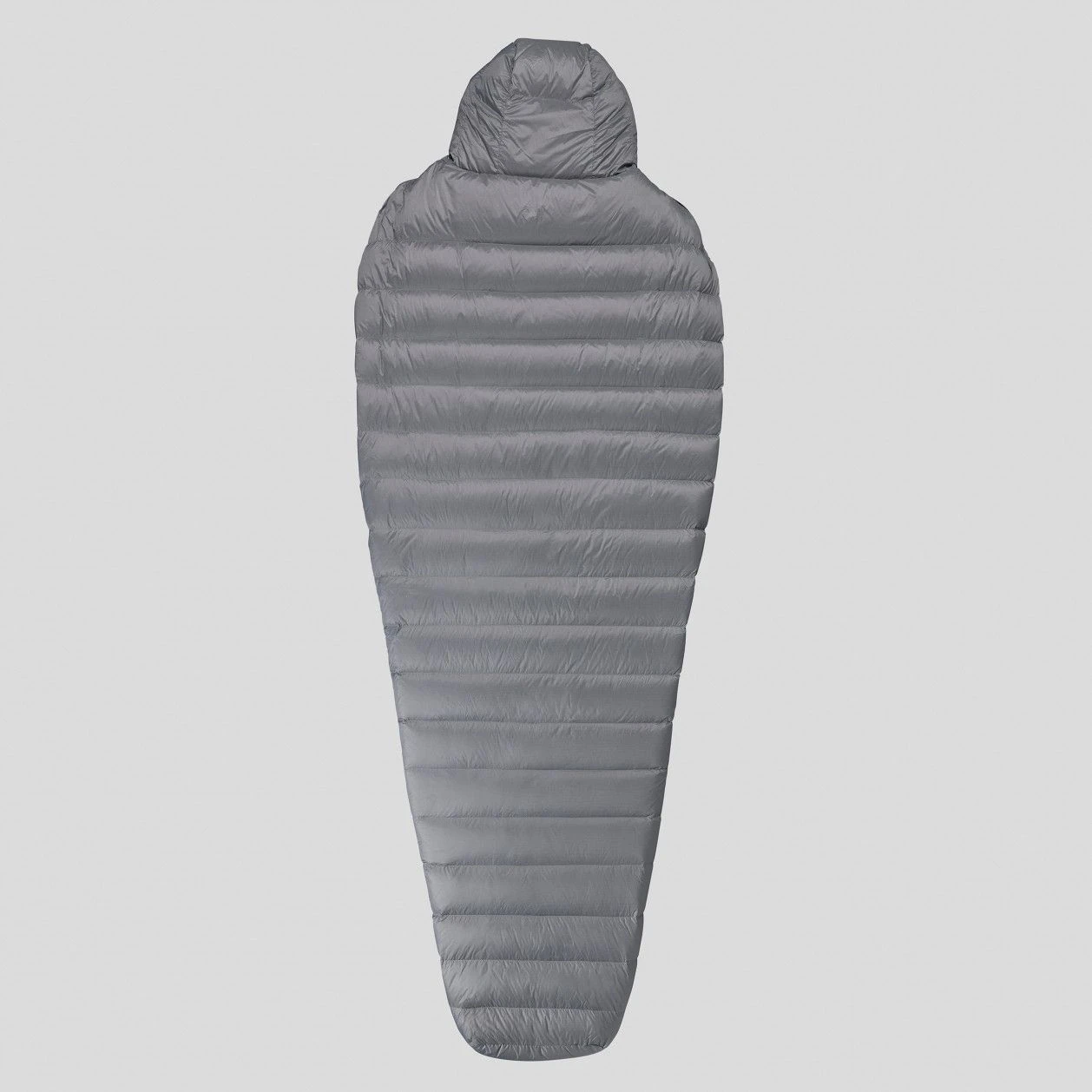 Sleeping bag 10 C in feather (down, 800 cuins): the top of the range. Warm, light, compact. Sarcophagus shape but comfortable. Ergonomic hood. Double slider zip. D beading ..