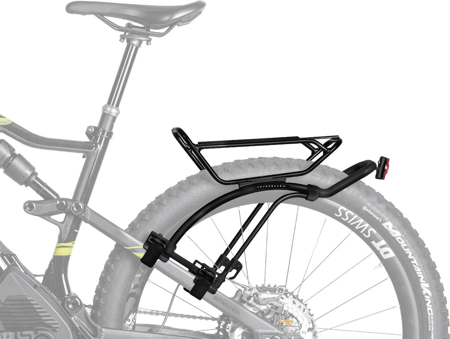 This one-size-fits-all rear rack features an innovative top plate that adjusts independently of the angle of the seat post.
